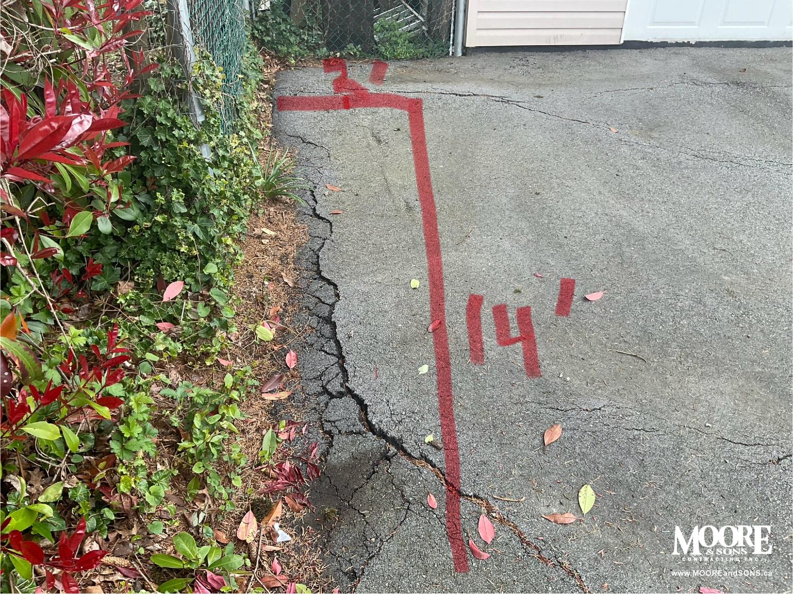 BEFORE view, cracked and sunken asphalt driveway