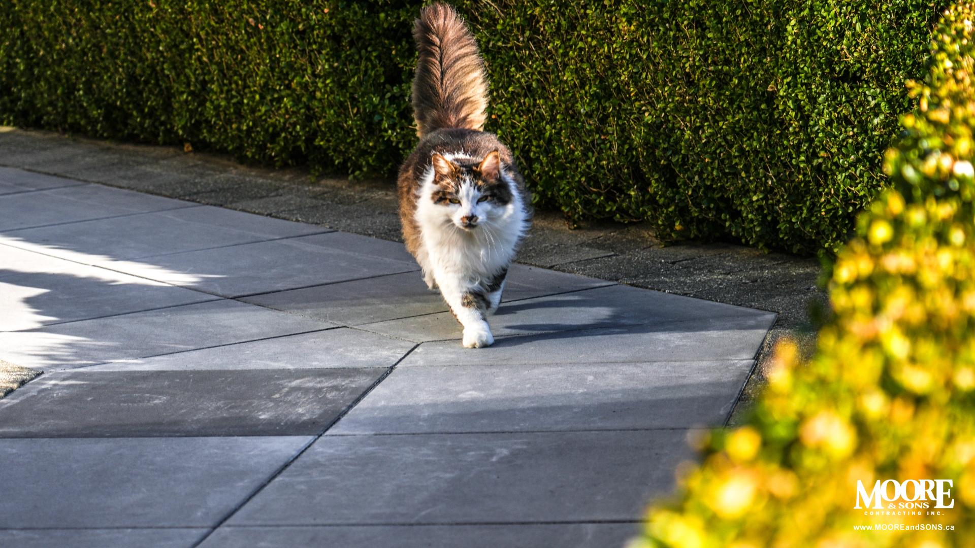 We couldn't be happier with the finished result - though our enthusiasm may be rivaled by the estate's resident cat. Clearly approving of the upgrade, the cat wasted no time claiming the new hardscape as a personal lounging, catwalking and rolling zone.