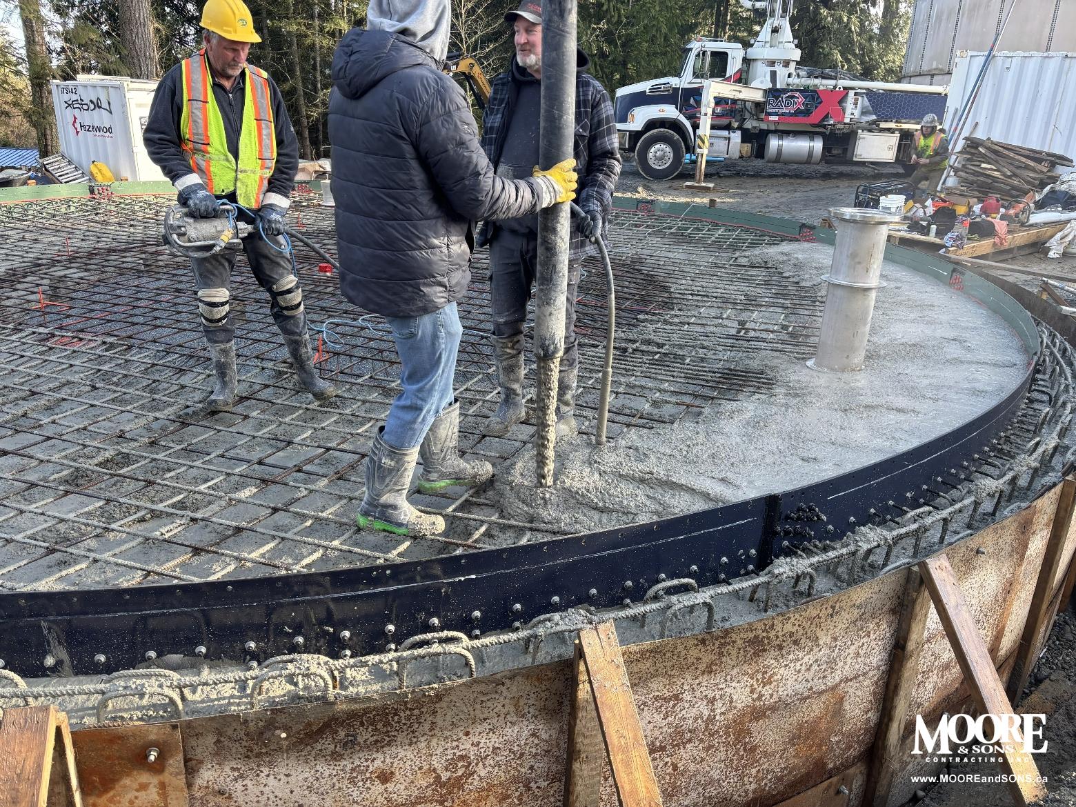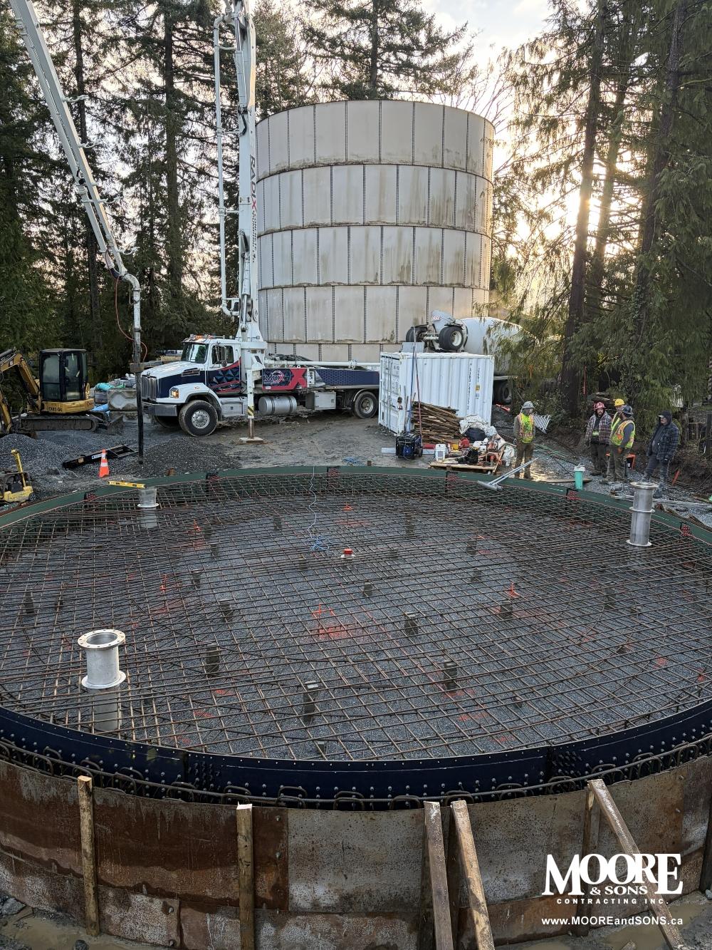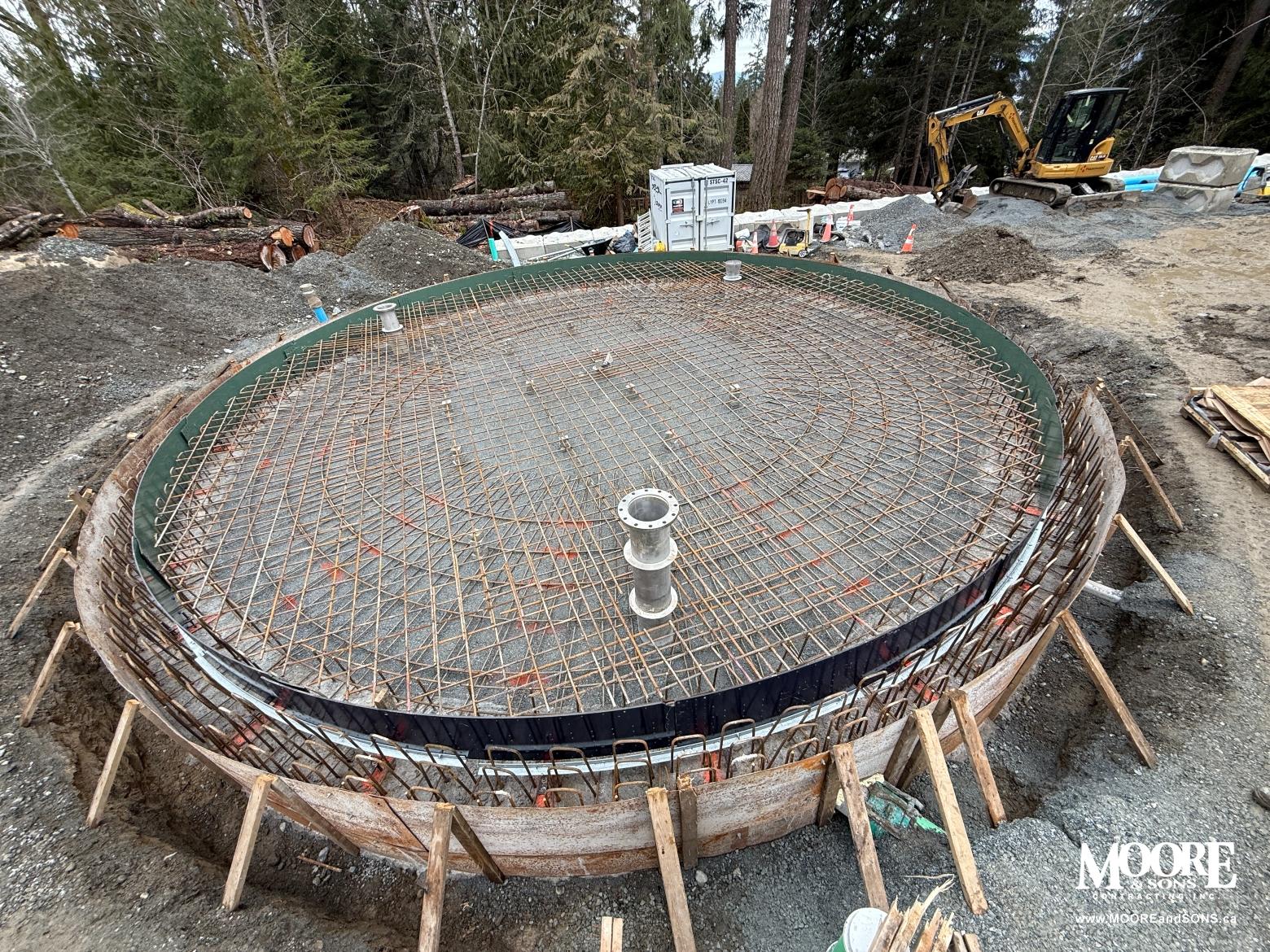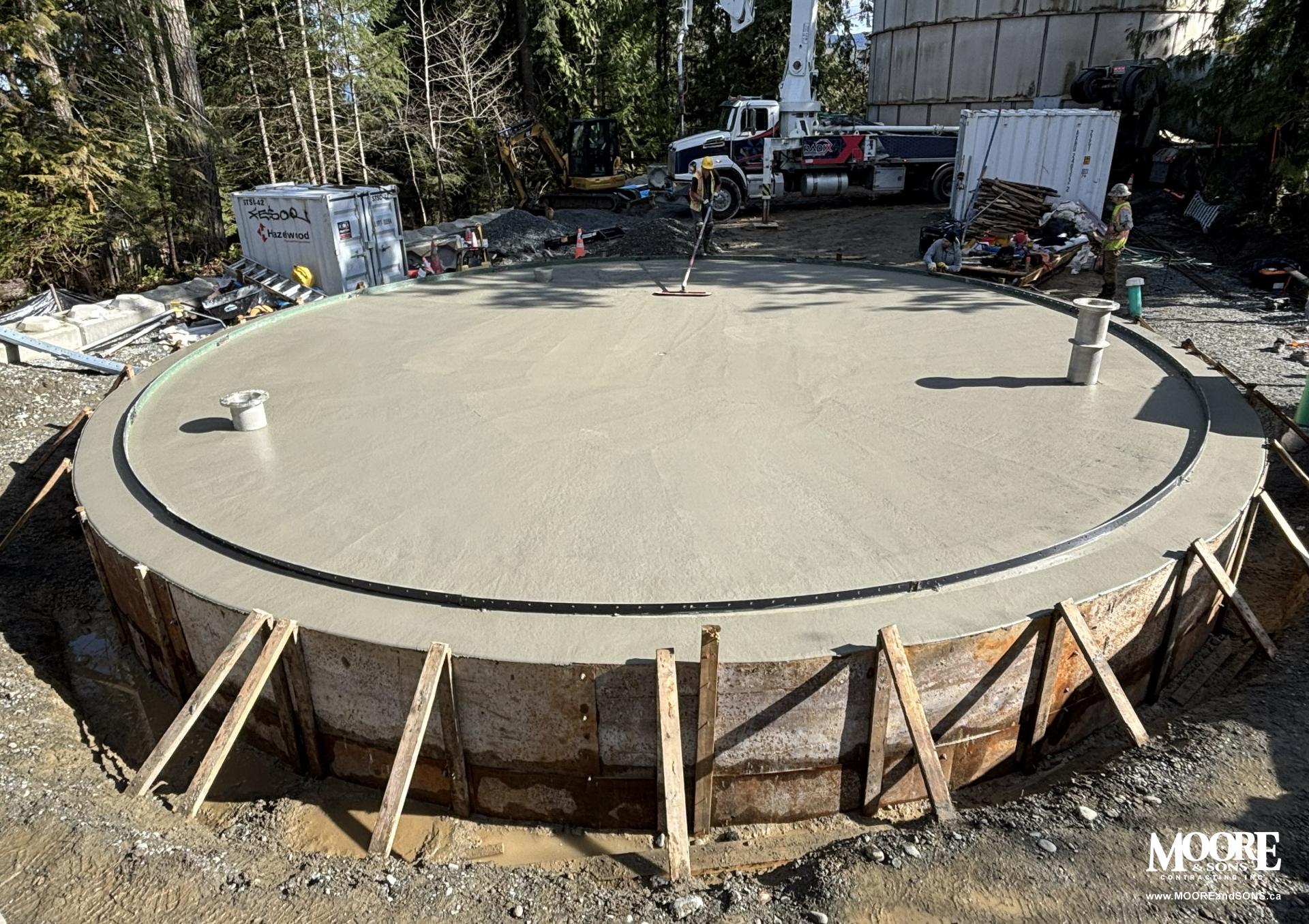 In Duncan, British Columbia, Moore & Sons has just completed a 40-foot-wide concrete base for a new water reservoir in Eagle Heights - marking an important milestone as the 60th industrial, commercial, or municipal water reservoir tank base we've built since 2016.